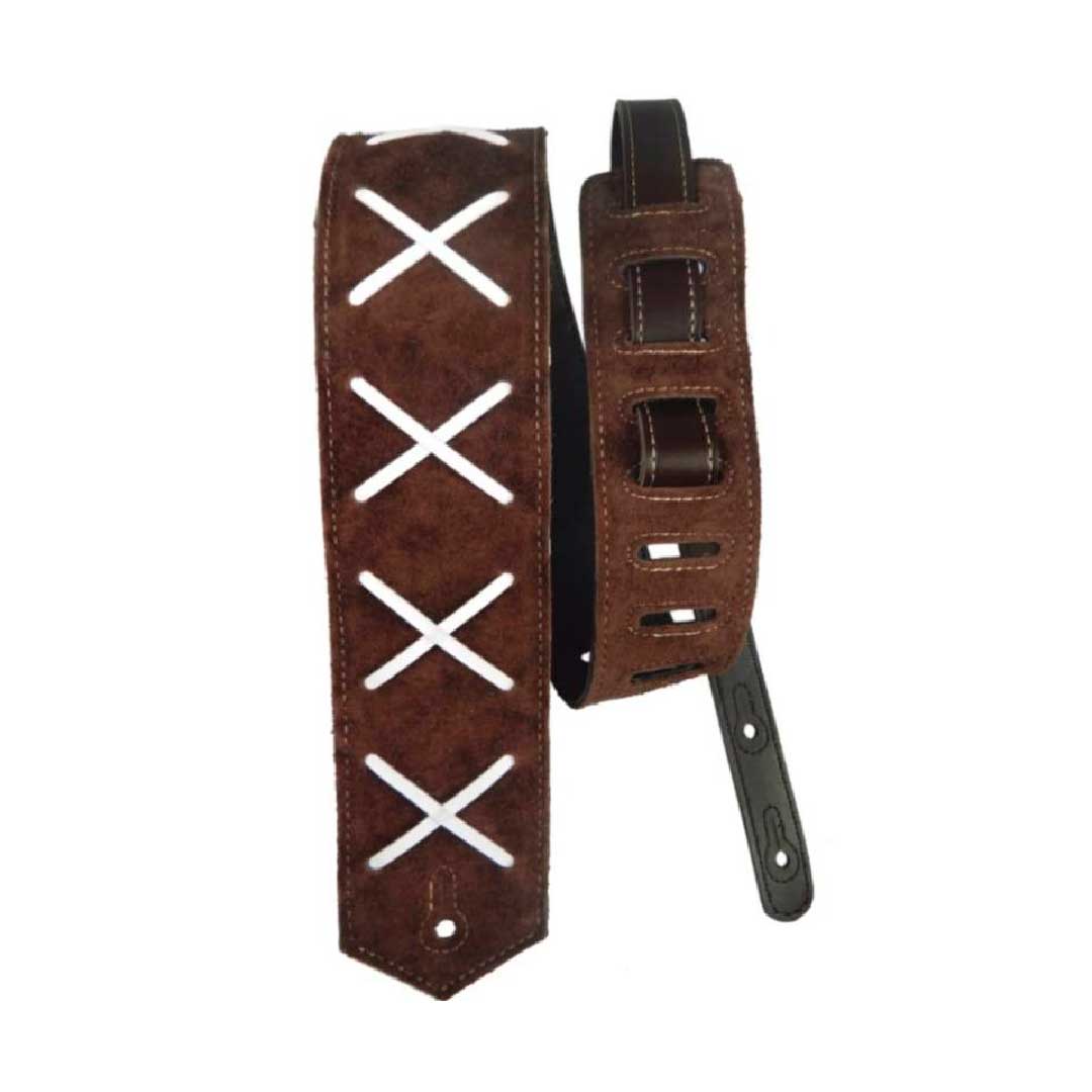 Correia especial feita com top em camurça MARROM ESCURO com detalhes em "X" traçados (produzida artesanalmente), inspirado nas correias dos anos 70. Forro em sintético para evitar a absorção do suor.
