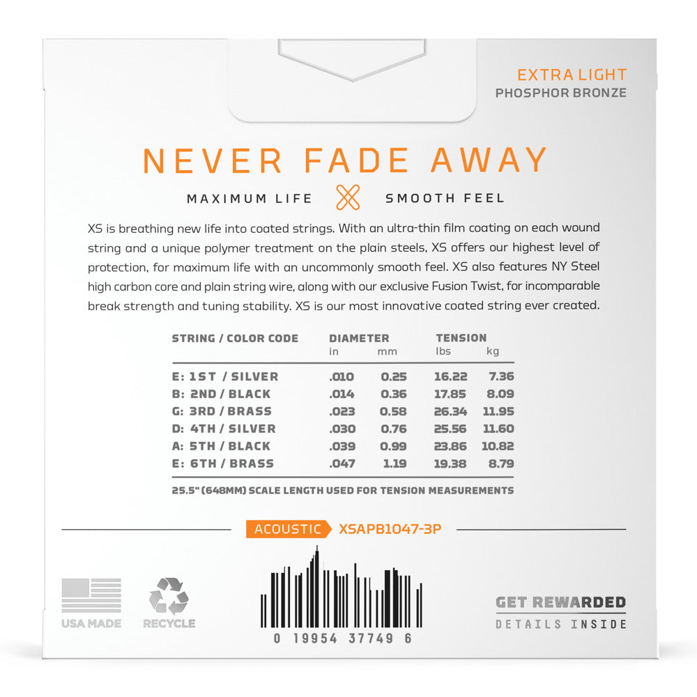 A D Addario XS Phosphor Bronze para violão aço representa o início de uma nova era em cordas revestidas. Com seu revestimento ultrafino em cada corda espiralada e tratamento de polímero exclusivo nas cordas lisas, a XS oferece durabilidade extrema com o mais alto nível de proteção, além de um toque surpreendentemente suave. Nossa exclusiva tecnologia Fusion Twist reduz o atrito da corda com o nut, assim você passa mais tempo tocando e menos tempo afinando. O consagrado núcleo NY D'Addario, com alta concentração de carbono, produz resistência e estabilidade de afinação incomparáveis. XS é a corda revestida mais inovadora já criada. Instrumento Recomendado:Violão Aço