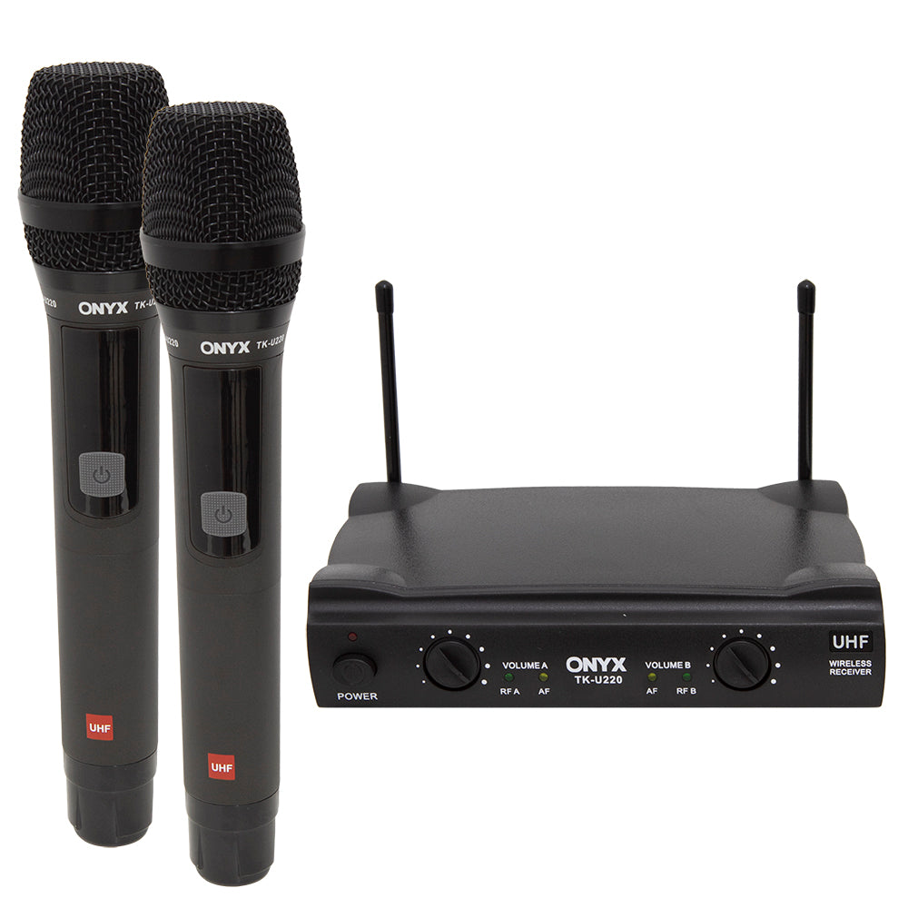 Microfone TK-U220 Onyx, possui 2 microfones wireless de mão para uso geral, prático e versátil um modelo UHF com menos chance de interferências. Acompanha Maleta para transporte.